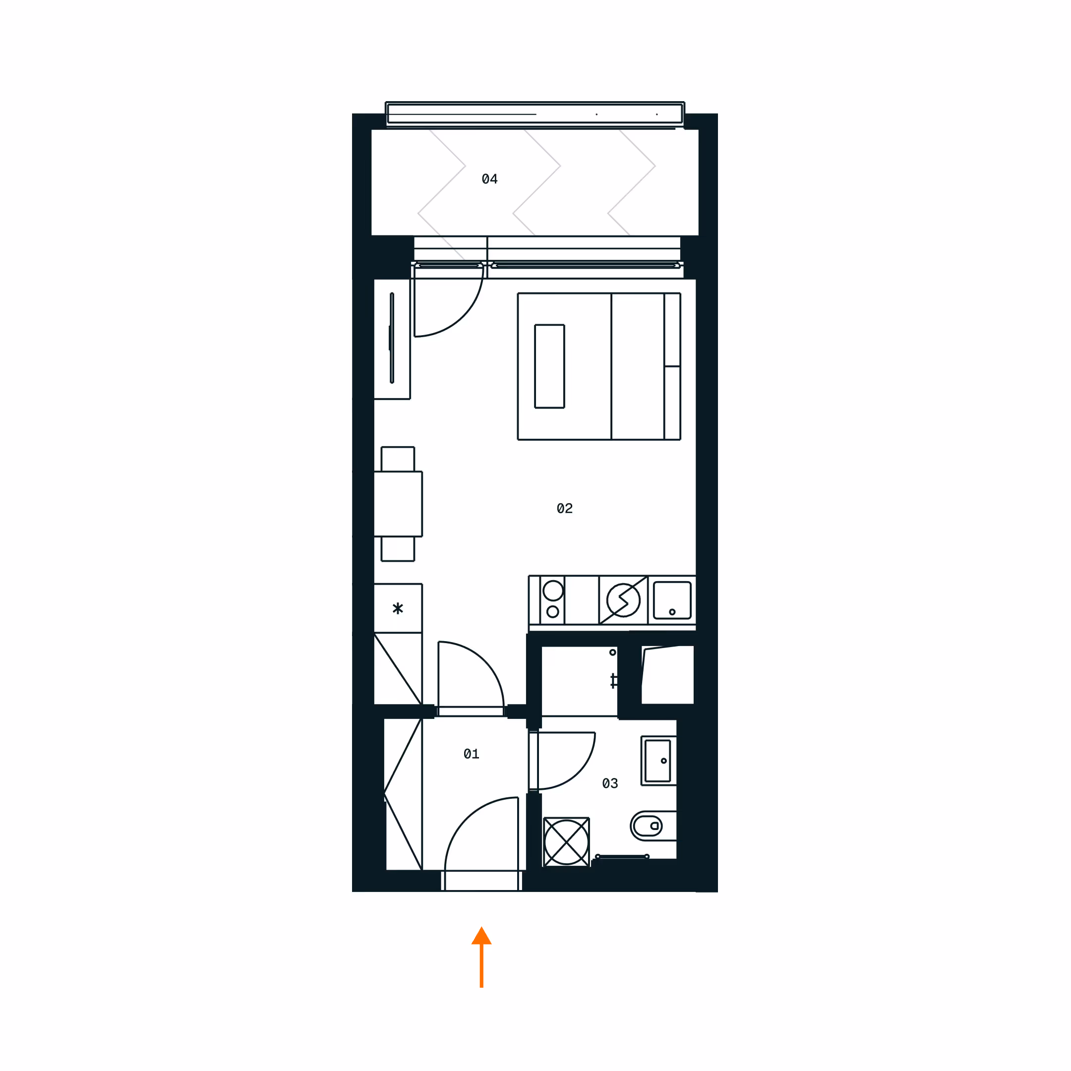 Plochy místností jsou orientační. Zařízení v půdorysu (nábytek, kuchyň, spotřebiče) není součástí dodávky. Specifikace dodávky a vybavení jsou ve standardním provedení, které je přílohou Smlouvy. Vizualizace jsou ilustrativní. Developer si vyhrazuje právo na změny.